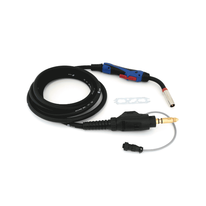 Antorcha ABIMIG A T 255 LW 5 m, 250 A, con cable de 5 m, cuello inclinado 60° y ajuste en 8 posiciones. Conexión INFRA para integración segura. Diseñada para soldadura MIG en talleres y producción industrial; ideal para pailería ligera, fabricación de estructuras y mantenimiento. Ofrece ergonomía, control térmico y rendimiento continuo, compatible con máquinas MM215, MM252 y MM261.