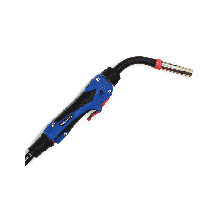 Antorcha ABIMIG A T 255 LW 5 m, 250 A, cable de 5 m, cuello 60° ajustable en 8 posiciones y conexión INFRA. Ergonomía y control para soldadura profesional industrial.